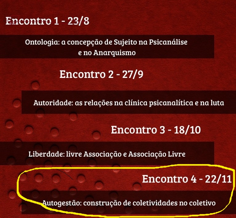 Leia mais: Pscanálise e anarquismo - 4 encontro - 22/11/25, 16h