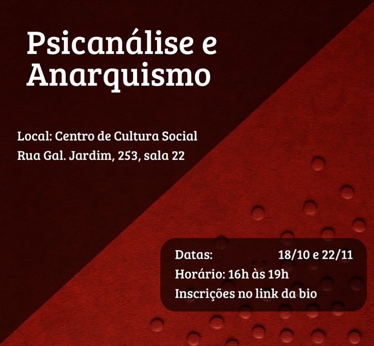 Leia mais: 27/09/25, sábado, 16h - Curso Psicanálise e Anarquismo