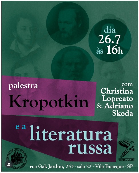 Leia mais: 23/07/2025, sábado, às 16h -"Kropotkin e a literatura russa", com Cristina Lopreato e Adriano Skoda