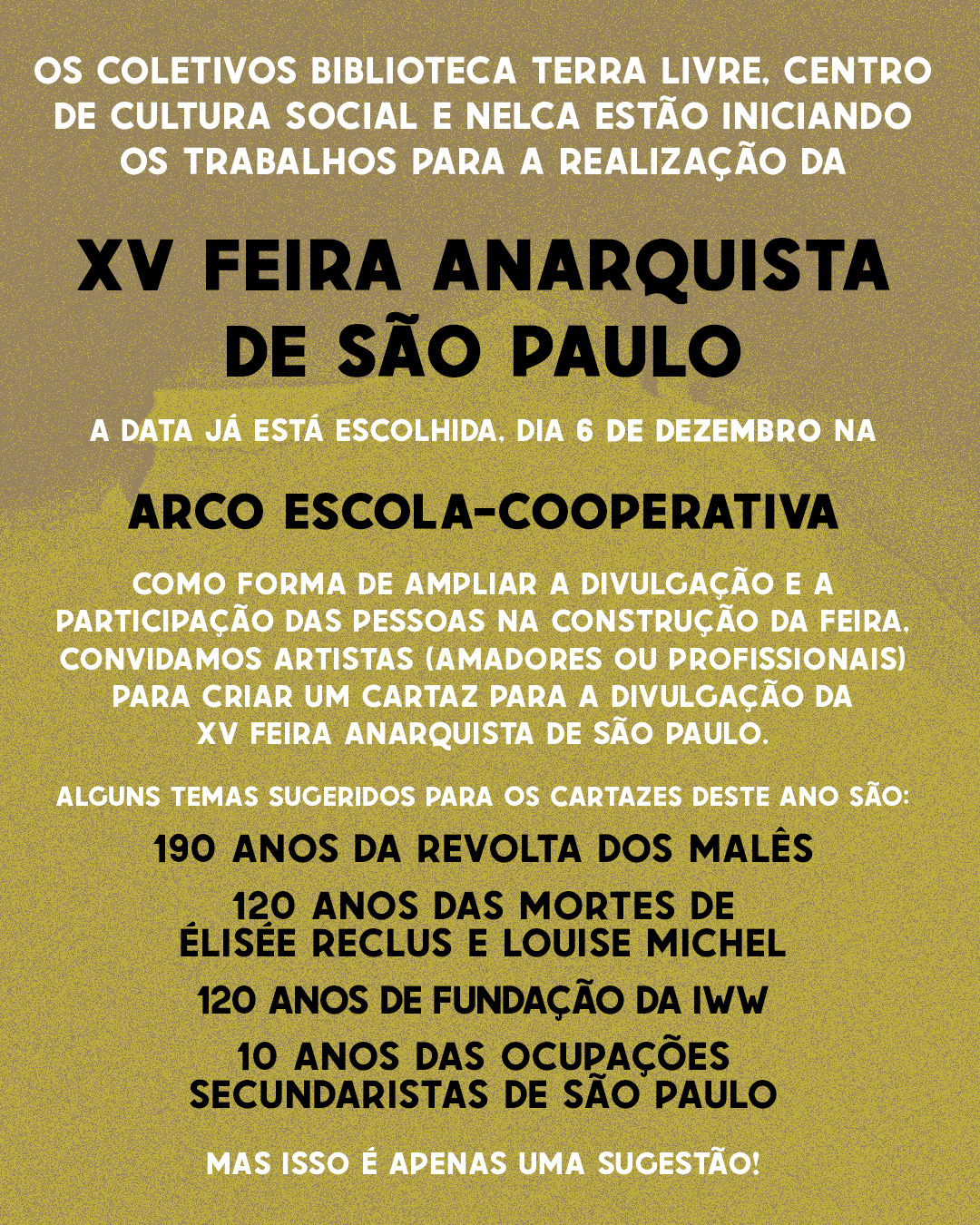 Leia mais: XV Feira Anarquista de São Paulo - 06/12
